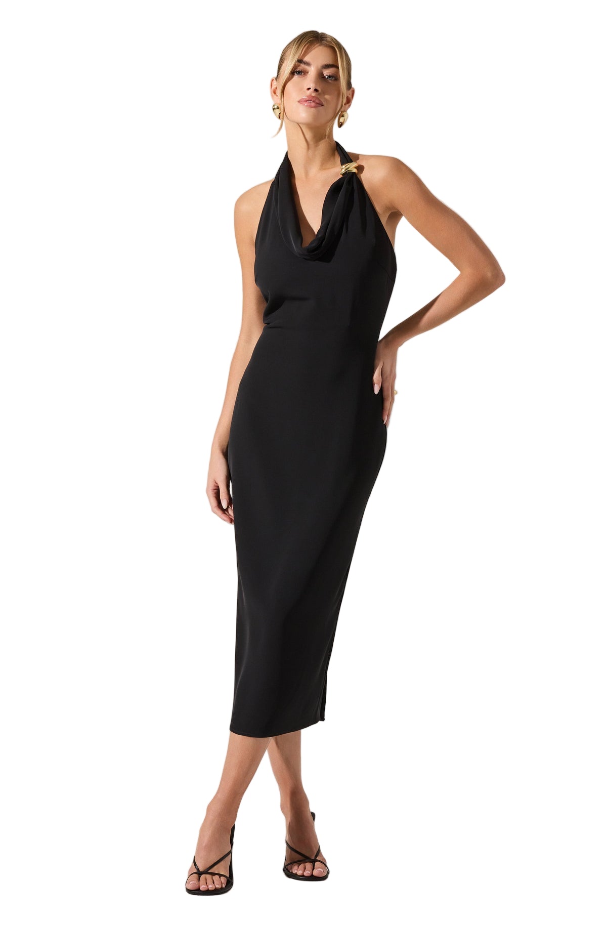 - Halter cowl neck dress