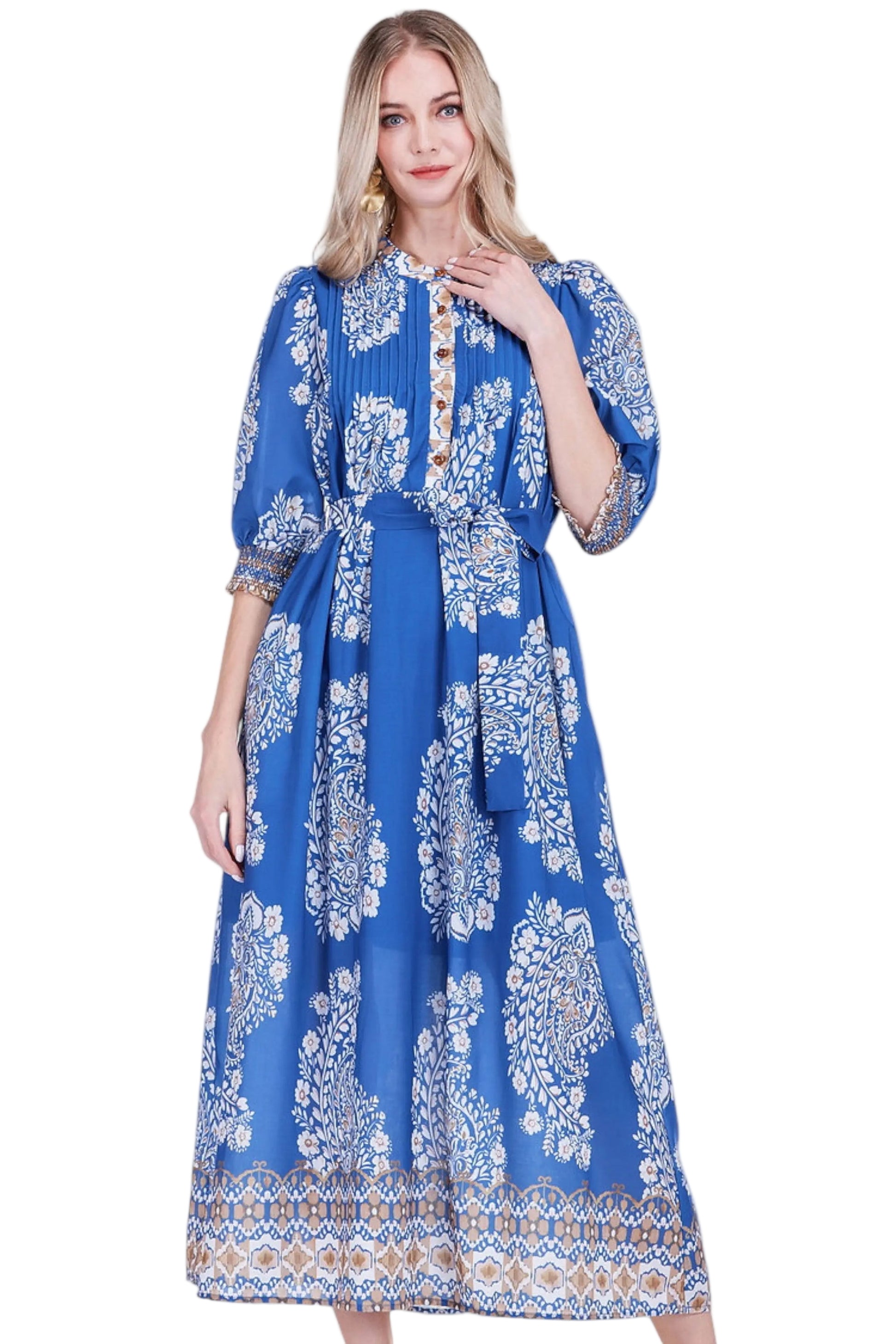 Express your playful side with our stunning Blue Pintuck Maxi Dress. The unique pintuck design adds texture and interest to this classic dress, while the vibrant blue color is sure to turn heads. Perfect for any occasion, this dress will make you stand out in style.