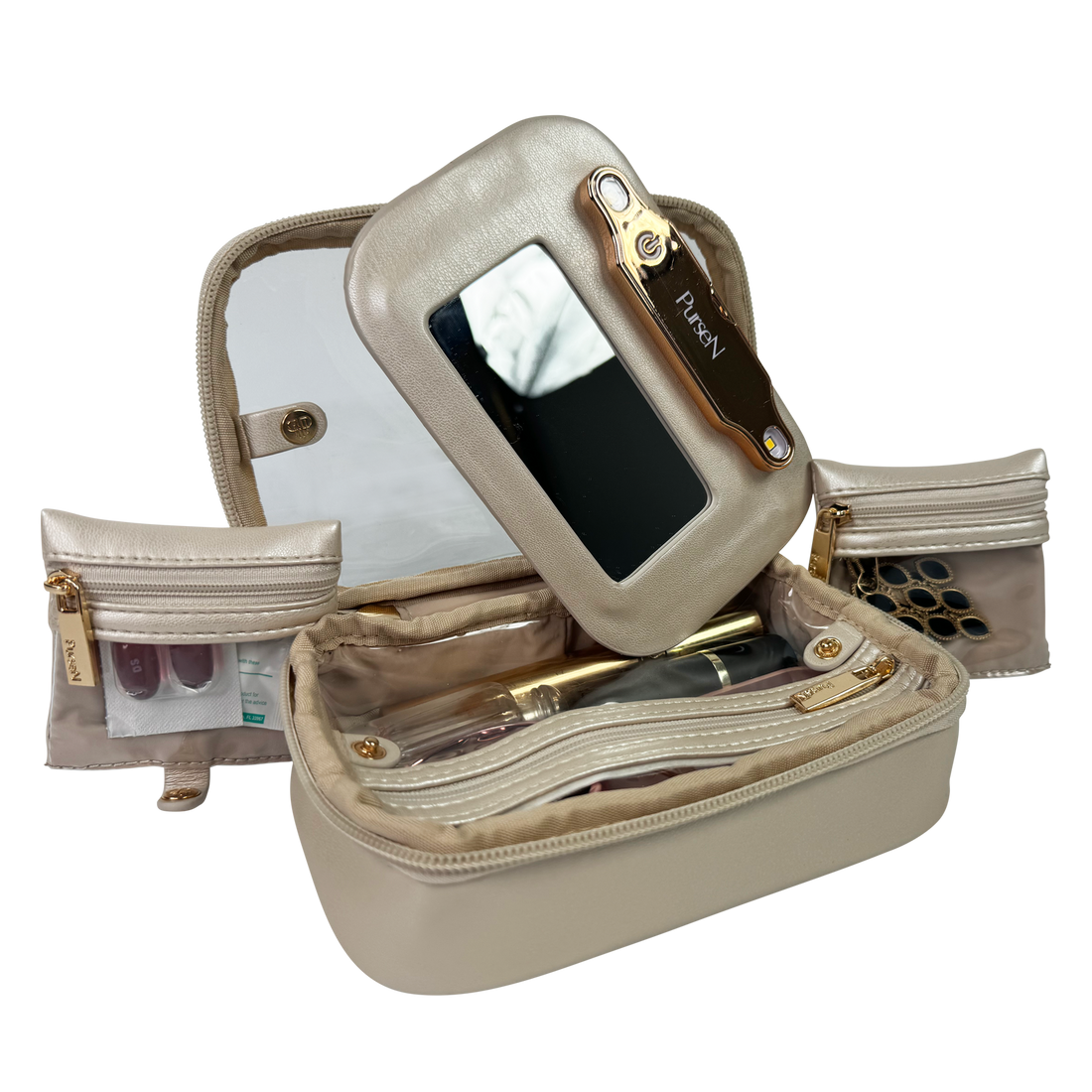 Introducing the LITTMINI Lighted Mirror Case ~ your ultimate solution for on-the-go beauty and organization! Say goodbye to cluttered handbags and hello to effortless elegance wherever you roam.
