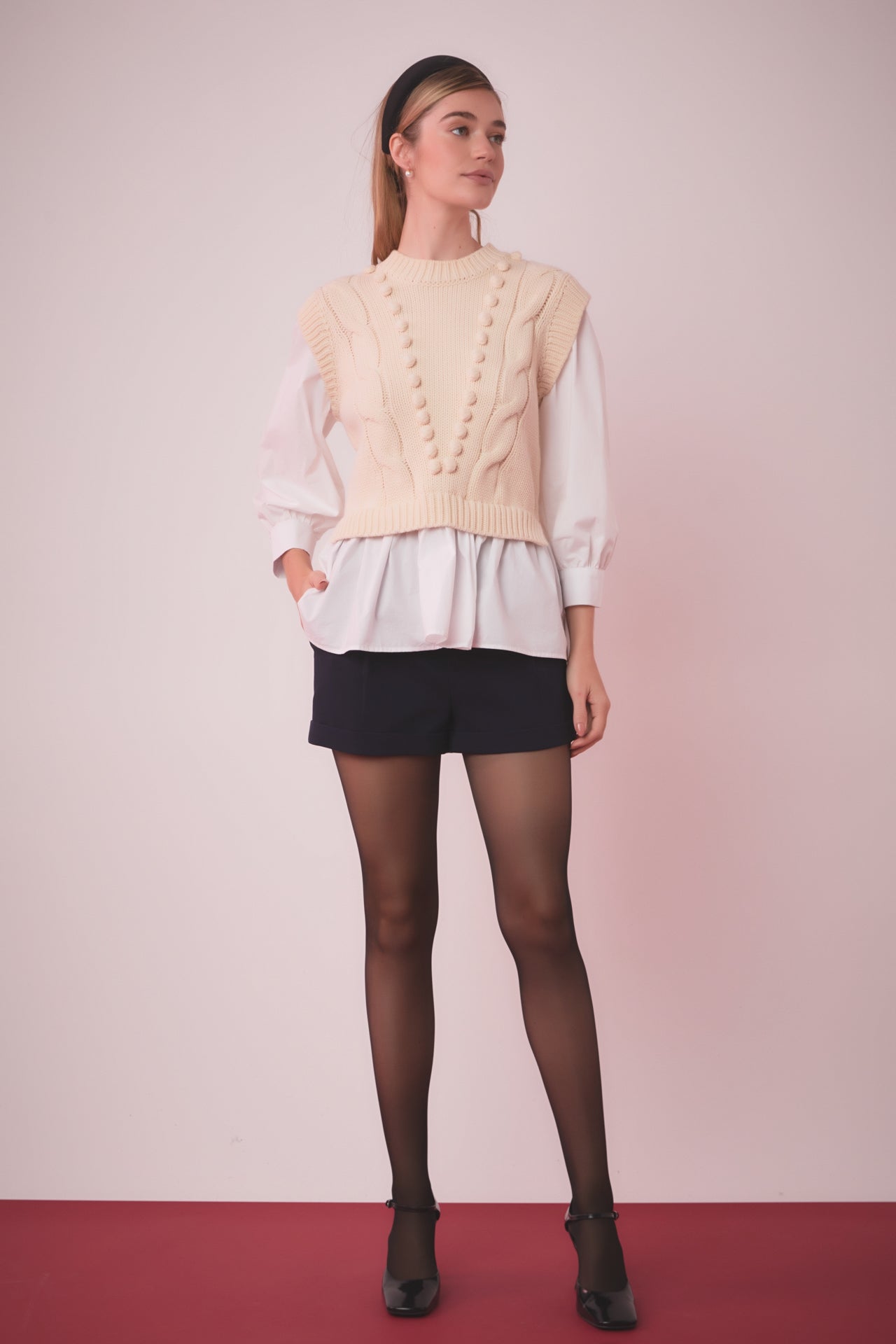- Contrast knitdown bodice