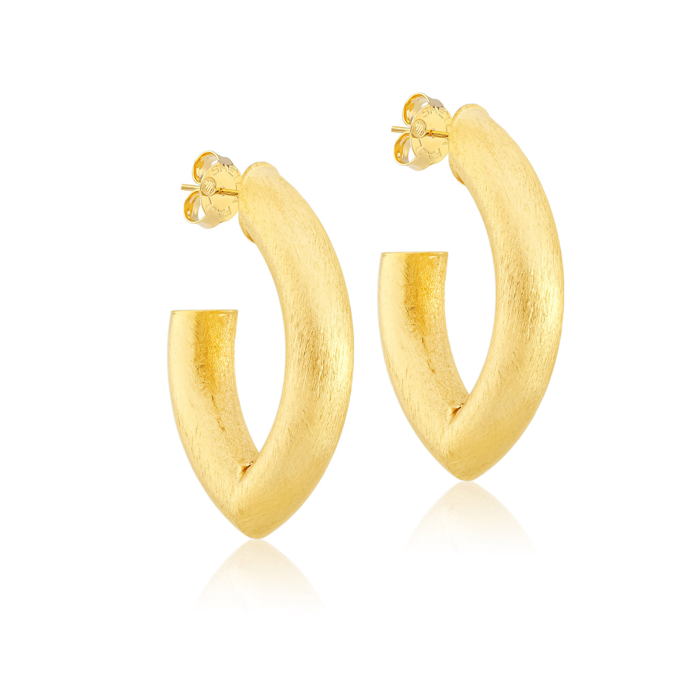 Handmade in Brazil. These artistically shaped hoops are a play on our tremendously successful Alba Hoops except the tubing is Rounded and polished to a radiant shine.